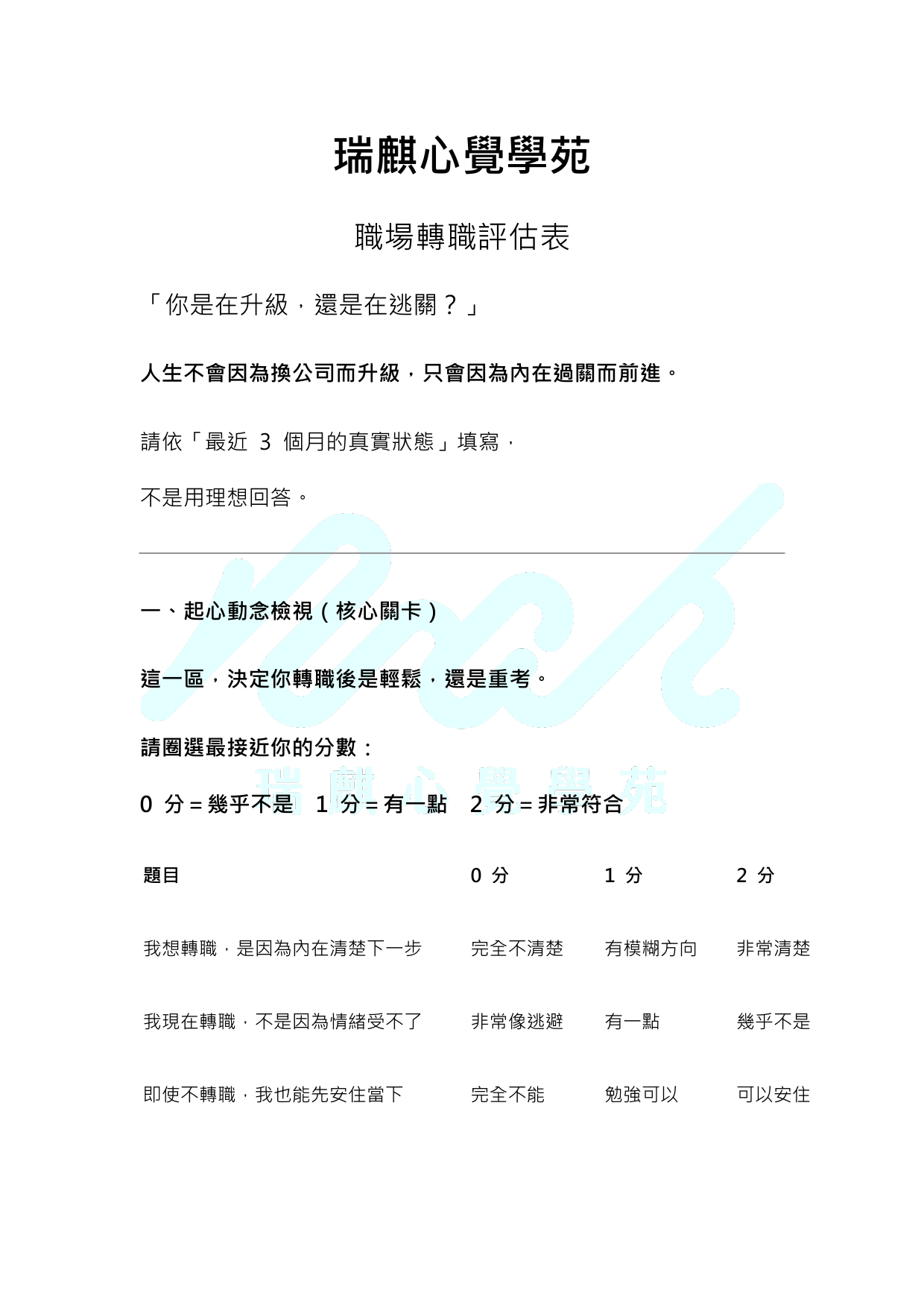 瑞麒心覺學苑x職場轉職評估表